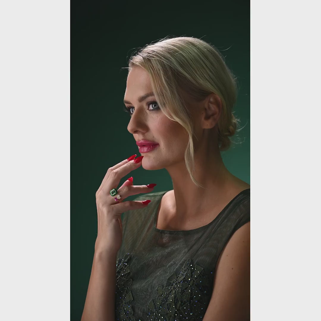 Enchanting crystal journey: - Emerald crystals in a bezel setting: On one end, representing enduring love, loyalty, and prosperity.
