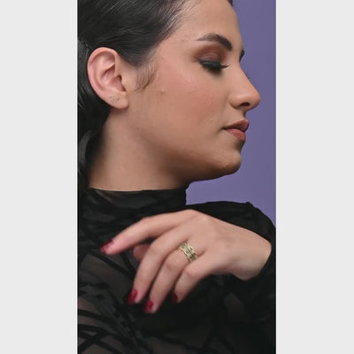 Entfesseln Sie das fesselnde Rätsel der Nacht mit dem Peacora Nightfall Beauty Ring, einer faszinierenden Mischung aus Vergoldung, komplexen Texturen und funkelnden schwarzen Kristallen.
