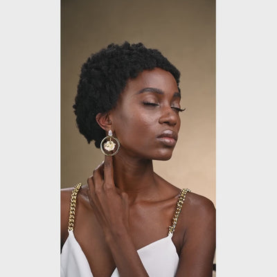 - Un toque caprichoso: la flor bañada en oro se balancea alegremente dentro del aro.