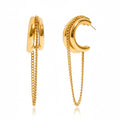 Edgy hoop earrings with delicate chain drop detail in a polished gold finish. Crafted from stainless steel, durable, hypoallergenic, and lightweight for all-day wear. Peacora brings you this modern statement piece.