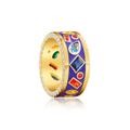 Unleash the captivating allure of a twilight sky with the Peacora Purple Haze Twilight Ring, a mesmerizing blend of 14k gold, regal purple enamel, and sparkling Pantone-coated crystals.
